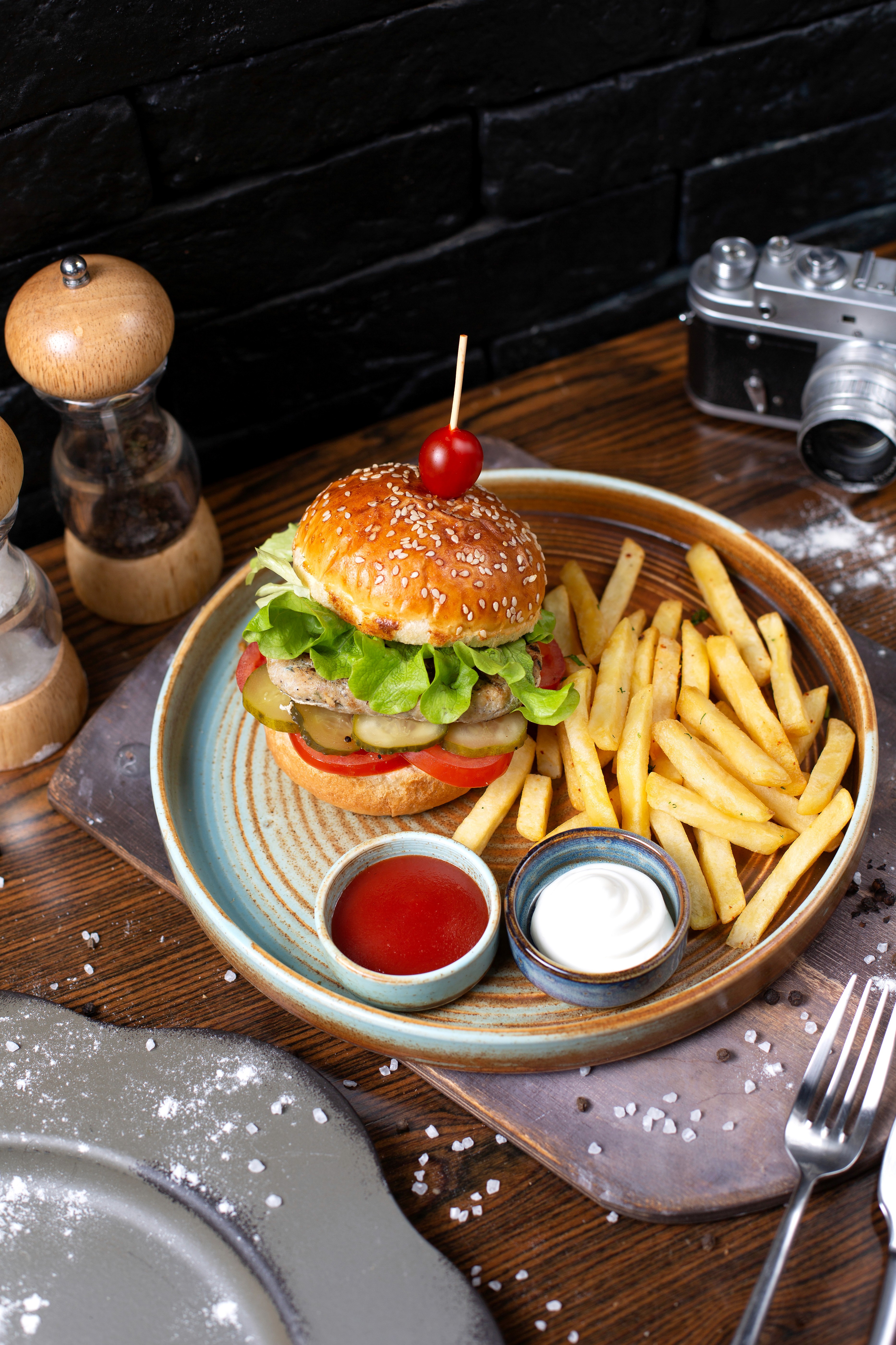 Chickenburger Mit Pommes